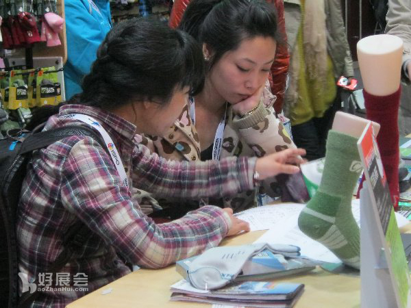 ISPO上,參展商正為觀眾介紹自己的產品