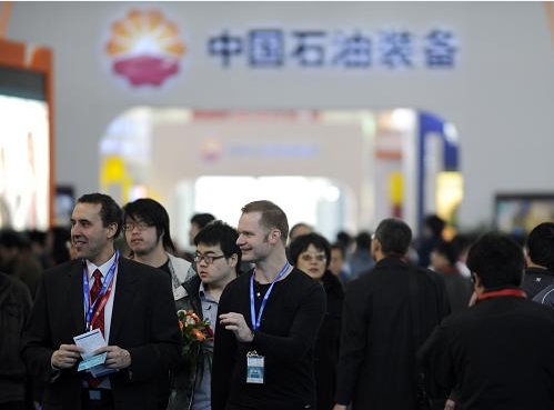 3月19日,外國觀眾在展會上尋找商機。當日,第12屆中國國際石油石化技術(shù)裝備展覽會在北京中國國際展覽中心(新館)開幕。本屆展會共吸引來自全球60多個國家和地區(qū)的參展企業(yè)1500余家,其中世界500強企業(yè)45家,展出面積達80000平方米,是全球規(guī)模最大的石油展。據(jù)組委會統(tǒng)計,展會首日接待專業(yè)采購團體110個,專業(yè)觀眾22000余人次,打破歷屆展會記錄。