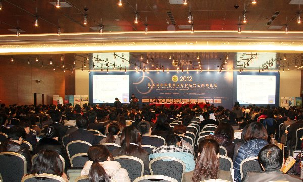 2012年3月27日-28日,由北京食品學會和北京食品協會聯合主辦,太平洋國際展覽有限公司承辦的“第五屆中國北京國際食品安全高峰論壇”在北京國家會議中心圓滿召開。來自國內外的知名食品企業、政府監管部門、科研院校等眾多專業代表歡聚一堂,針對食品安全領域的最新技術、熱點難點問題展開了深入的探討交流。大會總的參會人數突破1000人以上,是歷年來參加人數最多的一屆會議。