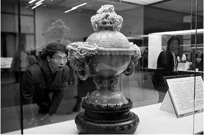 工藝美術(shù)領(lǐng)域也有了雙年展。昨日,2012年“中國當(dāng)代工藝美術(shù)雙年展”在國家博物館開幕,展覽從今日開始至5月6日對(duì)外展出。約千件玉雕、木雕、陶瓷等工藝美術(shù)作品構(gòu)成了首屆中國當(dāng)代工藝美術(shù)雙年展。其中中國工藝美術(shù)館收藏作品、國寶級(jí)翡翠玉雕“含香聚瑞”花薰等展品成為此次雙年展的重頭戲。