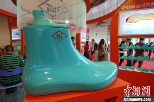 4月19日,第十四屆中國(晉江)國際鞋業(yè)博覽會在“中國鞋都”福建晉江開幕。圖為參展商展出創(chuàng)意工藝鞋,格外醒目。來自10多個國家和地區(qū)的500多家知名企業(yè)參展,70多個國家和地區(qū)的近千名海外客商和專業(yè)采購商齊聚盛會。始于1999年的中國國際鞋博會,已成為中國規(guī)模最大、影響最廣、專業(yè)性最強的鞋業(yè)盛會之一,被業(yè)界譽為“中國十大魅力展會”之一。 (來源:中新網(wǎng))