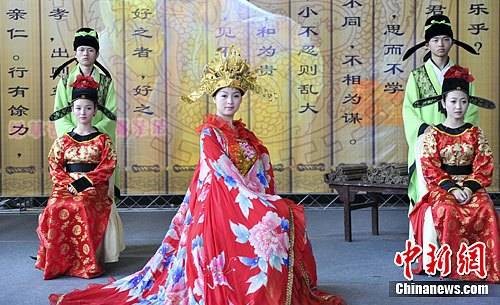 4月24日,古裝美女在中國(濟南)國際演出交易會暨演藝裝備場所設施展覽會上向觀眾推介演藝項目。當日開幕的該展會有200多家國內知名演出公司、演藝裝備場所設施企業(yè)向參觀者推介演藝項目、展示演出設施設備。(來源:中新網(wǎng))