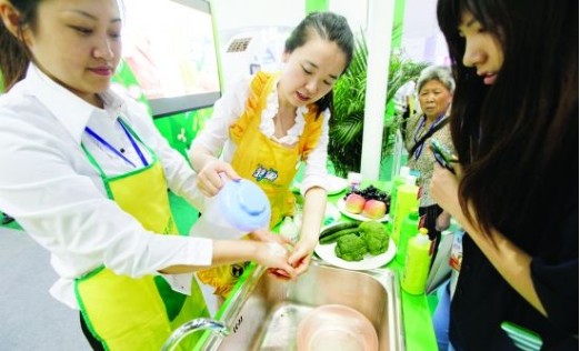 5月6日,在中國國際清潔產(chǎn)業(yè)博覽會上,工作人員演示清潔產(chǎn)品的對比實驗。當(dāng)日,為期3天的2012中國國際清潔產(chǎn)業(yè)博覽會在北京國家會議中心開幕。本屆博覽會的主題是“新清潔點亮新生活”,吸引了國內(nèi)外上百家清潔企業(yè)攜最新清潔技術(shù)和理念參加。(來源:新華網(wǎng))