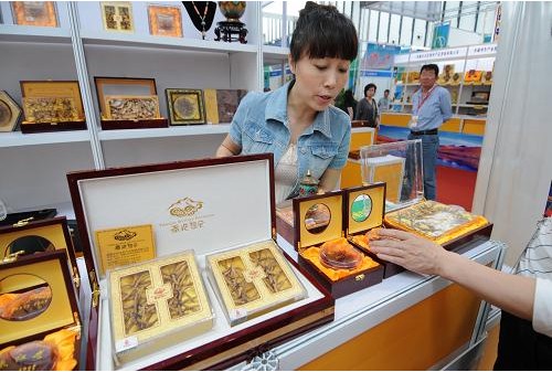 一家來自西藏的參展商展出蟲草制品(5月10日攝)。5月10日,由商務部和江蘇省人民政府聯合主辦的第七屆跨國零售集團采購會在南京開幕,近2000家采購商及供應商參加了采購會。本屆采購會吸引了沃爾瑪、家樂福、大潤發等近20家跨國零售集團以及國內大型商貿流通企業和國際采購商。