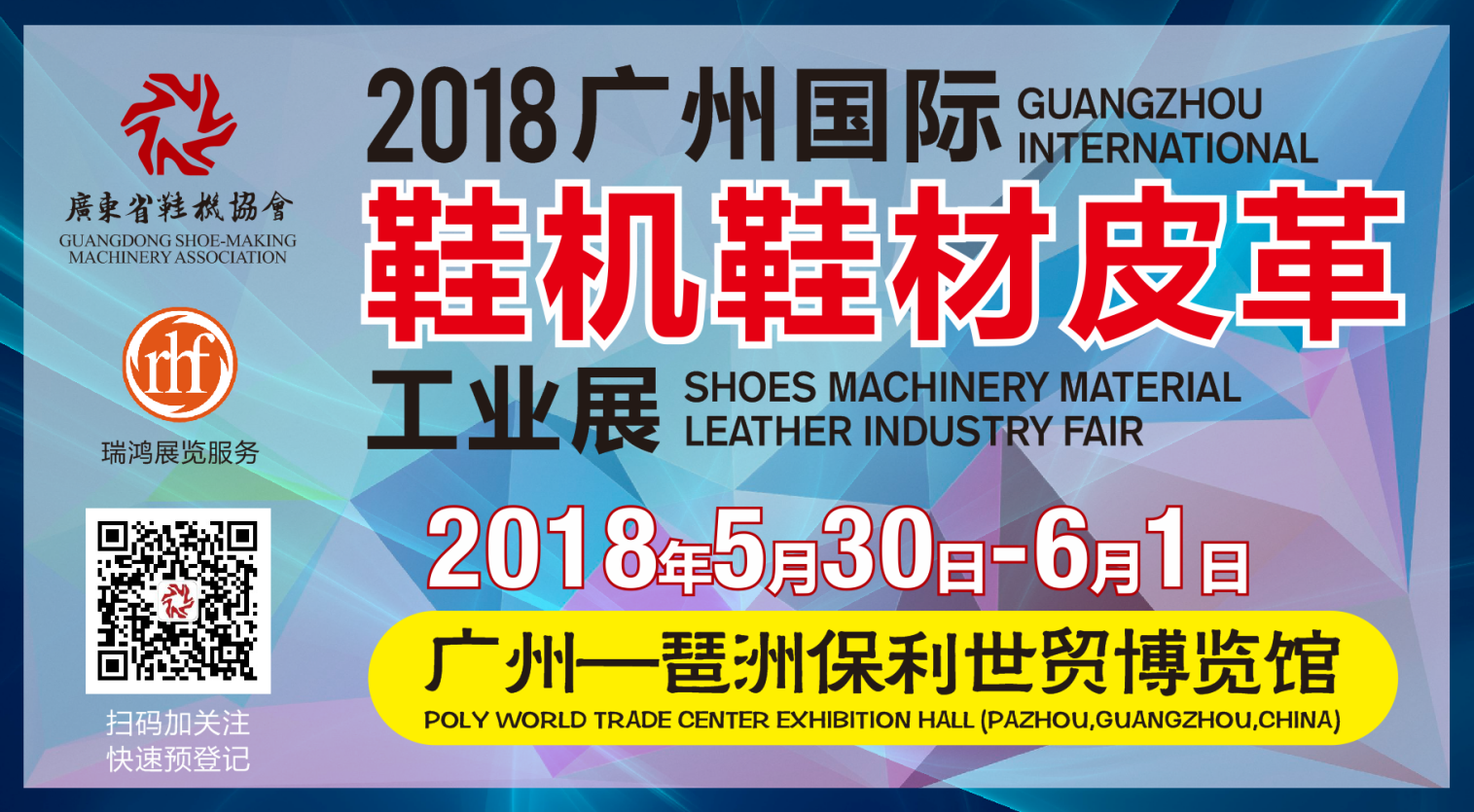 “2018廣州國際鞋機鞋材皮革工業展”將于2018年5月30-6月1日在琶洲保利世貿博覽館舉行,本屆展會由廣東省鞋機協會、東莞市鞋機商會和廣州瑞鴻展覽服務有限公司共同主辦。本次展會預計將迎來35000名海內外專業買家與幾百家展商參與,作為行業重要的國際鞋機鞋材皮革工業展會,展會現場將集中展示全行業10000+種類新品,頂尖技術悉數亮相!