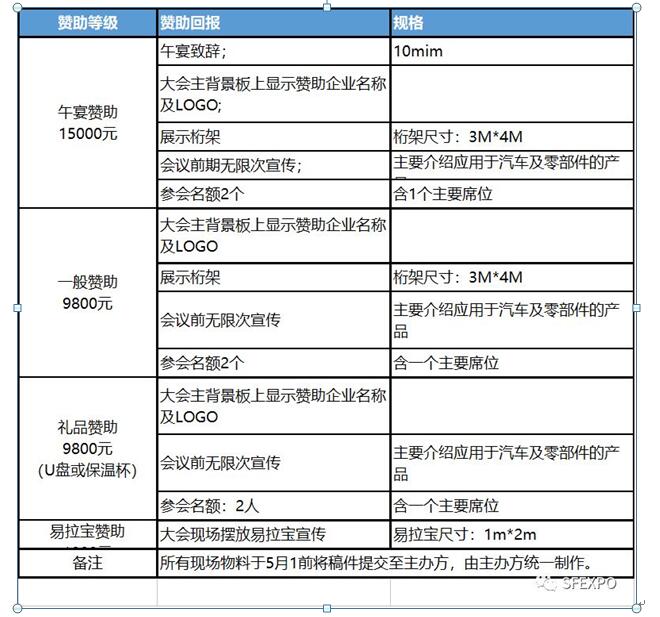 為了給部分汽車表面工程相關的供應商提供一個精準展示推廣的機會,現提供以下贊助方案: