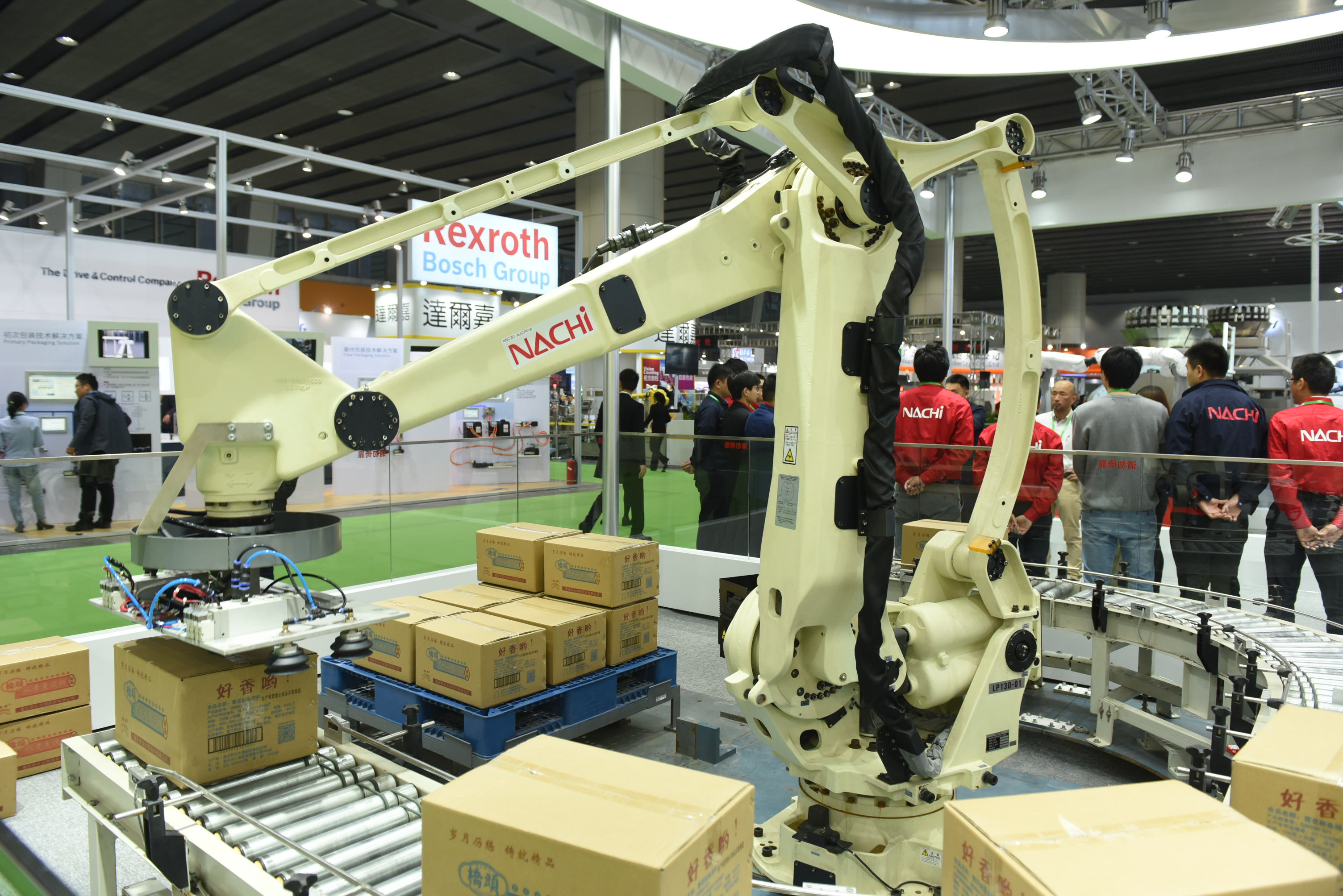 智能展區匯聚包裝智能巨頭同場競技:ABB 現場演繹IRB 360機器人,其集成的視覺系統,如同機器人的“眼睛”,識別部件的尺寸、形狀和位置變化; 那智NACHI高精度機器臂MZ12,把設置面積減小了17%、本體品質減輕了29%,擁有同等級別以上的工作范圍;史陶比爾TX2系列機器人兼顧了協作安全性及高速度,重新定義了機器人性能;優傲協作機器人的傳送帶將跟蹤抓料及碼垛應用結合,大大縮短了程式設計和部署系統所需的時間。
