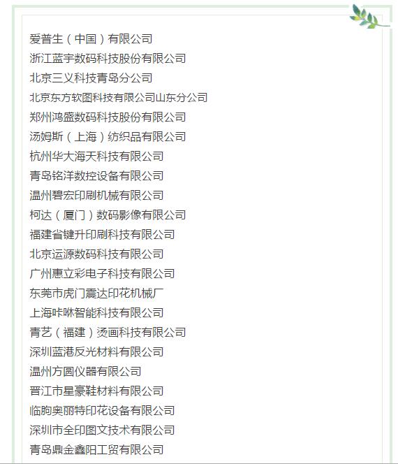 2.印花材料: 噴墨墨水、熱升華墨水、熱固油墨、水性油墨、轉印油墨、噴墨印花前后處理助劑、制版材料、印花膠漿、印花助劑、印花涂料、金蔥粉、印染助劑、樹脂、色漿、糊料粘合劑、硅膠、熱熔膠、燙金紙、燙畫紙及轉印紙、植絨粘合劑、植絨助劑等。