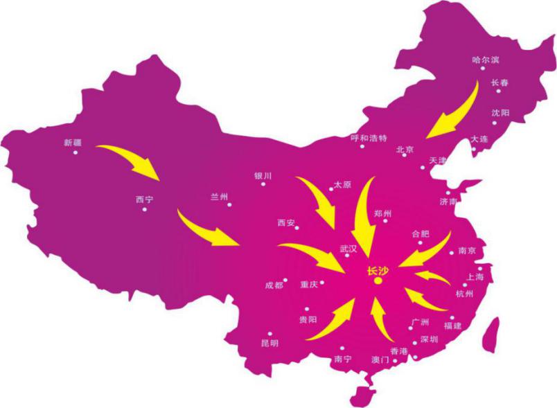 1.長沙作為湖南省省會,承東啟西,連南接北綜合競爭力居全國前列,正在逐發展成為中國經濟主軸的新亮點和商貿物流新中心,被譽為進軍中部地區橋頭堡城市。以長沙為中心向東、西、南、北圍繞輻射長江中游武漢城市圈、長株潭城市群、環鄱陽湖經濟圈等30座城市,是國內品牌及眾多國際品牌開拓中部的首選市場;