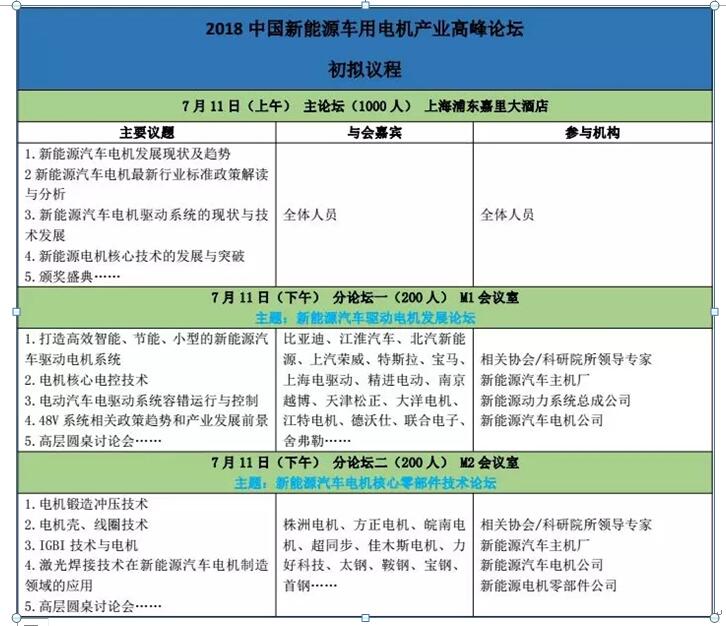 2018年第三屆中國新能源車用電機產業高峰論壇--聚焦新能源汽車驅動電機及其控制&NEV新能源車用電機行業創新力企業評選強強聯合打造超強嘉賓陣容將邀請行業1000+來自新能源汽車電機領域相關行業協會/學會/聯盟、新能源驅動電機廠商、硅鋼/漆包線/磁性材料/銅鋁材、鐵芯沖片/軸承/轉軸/機殼端蓋/鑄件/絕緣材料/傳感器等配件商、橫剪縱剪/開平機/送料機/沖床/模具/繞線機/性能檢測設備/電焊機/自動化產線/磁鋼裝配等設備供應商、電機控制系統及裝置、高校科研院所、整車企業等行業一線大佬透過高端演講對話及互動交流形式,從市場及技術應用不同層面探討產業發展熱點。碰撞智慧,共迎綠色的未來!