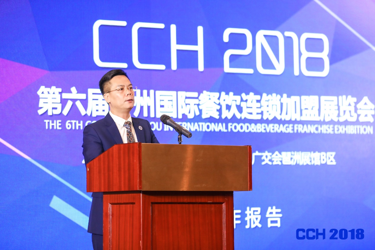 CCH廣州餐飲連鎖展組委會總指揮鄭軍志進行了以第6屆CCH展工作進展報告為主題的講話。他就行業趨勢、CCH平臺的誕生及定位,以及第6屆CCH近一年籌展期內的工作進度,作了全面而深入的講話。