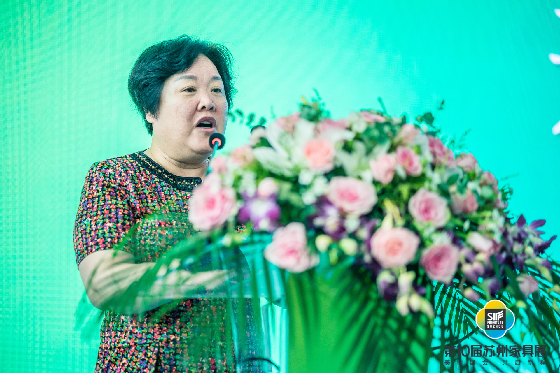 江蘇省家具行業協會執行會長馮建華女士上臺致辭,首先表達了對全國家具人蒞臨江蘇的謝意,肯定了蘇州家具展對江蘇乃至華東家具發展的重要作用。馮會長表示,希望江蘇省家具行業人,充分利用長三角產業集群的優勢,擴大競爭與合作效應,建設區域品牌,提高整體競爭力,助力產業升級。最后馮會長也表達了對第10屆蘇州家具展的美好祝愿!