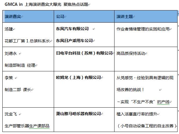 延續在日本舉辦30余年以來的傳統,GMCA論壇曾于日本福岡、名古屋、仙臺以及泰國曼谷舉辦多次并大獲成功。我們將會邀約各個行業龍頭企業活躍在制造現場的一線監督員通過分享實踐管理的經驗以及日本各大知名企業高層作為評審員對優秀企業進行表彰,更有中日兩國優秀個例交流活動,希望通過此次活動展示交流更優秀的制造業管理水平、更先進的制造業現場技術,旨在通過分享探討,使中國制造業能夠通過智能制造以及高新技術的快速發展,提升并加快企業的轉型升級!
