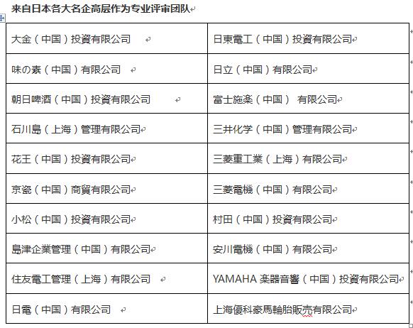 奧林巴斯株式會社、卡特彼勒公司、KMEW有限公司、神戶制鋼所、JFE鋼鐵株式會社、索尼半導體制造公司、大金工業株式會社、大發工業株式會社、電裝公司、TOTO株式會社、豐田汽車公司、日產汽車株式會社、日本信號株式會社、日立金屬投資有限公司、本田科技工業、馬自達株式會社、雅馬哈發動機株式會社、雅馬哈公司