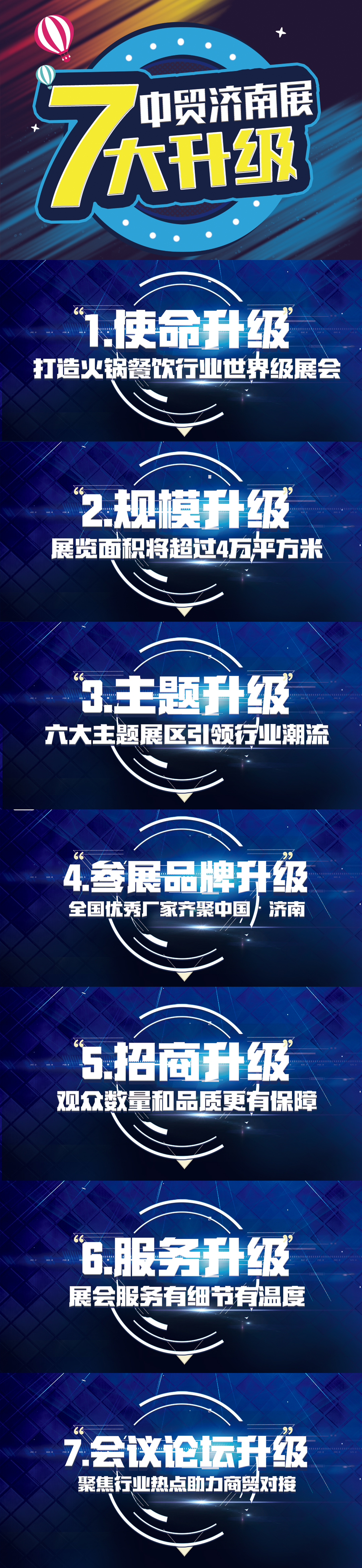2018第12屆全國食品博覽會暨濟南糖酒會的成功舉辦,離不開行業內知名品牌對展會的支持。與此同時政府機構以及專業協會的傾力相助,帶來高質量的專業買家團隊觀展。這兩股合力,將在2019展會上再次凝聚。過往輝煌皆為序章,2019第13屆全國食品博覽會暨濟南糖酒會將繼續砥礪前行!經過十幾載的運作和探索,CNFE規模不斷擴大、專業化程度不斷提升。2019CNFE將結合12年的行業經驗積累,伴隨上屆展會的行業認可度,從“新”出發,全面升級:使命升級、規模升級、主題升級、參展品牌升級、招商升級、服務升級、會議論壇升級!七大升級,將給您帶來耳目一新的參展感受以及最貼心的觀展體驗。