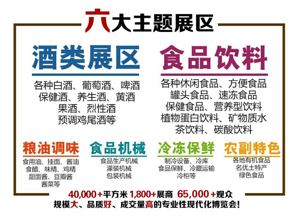 本次展會預設八個館,共計2000多個展位,將設立食品、酒類、飲料、食品機械、調味品等專業性主題展區,展區特色鮮明,引領食品糖酒發展新方向。展會的展品水平、品種、規格的覆蓋面均創新高。以專業觀眾為重點,提升會展專業化水平,本屆糖酒會組委會把專業觀眾的邀請組織工作放到了位并制定了詳細的專業觀眾的組織和宣傳推廣工作:一方面通過行業網絡媒體宣傳邀請專業觀眾參會,把專業觀眾的組織工作深入到各地市的每一個縣區;另一方面中貿集團掌握百萬條專業買家數據,覆蓋各類參展企業對于代理商流通商的需求方向,派發50萬張參觀劵和20萬份請柬以及10萬份《展前預覽》直接邀請國內商場超市、批發市場、餐飲酒店、賓館和相關政府部門、企業、代理商前來參觀、洽談、訂貨。同時投入巨資為到會觀眾免費提供酒店住宿、大巴車接送等服務,傾力打造中國效果最好的糖酒類食品展。為國內外食品行業企業開發維護市場做好服務,為糖酒類、食品經銷商的選品和學習交流搭好橋梁,為中國糖酒食品行業發展再添新能量。另外以強勢媒體為依托,全方位多角度宣傳,展會舉辦效果如何,宣傳至關重要。媒體支持專業會展公司辦展,其優勢毋庸置疑。本屆全國食品博覽會暨濟南糖酒會也將會注重互聯網媒體的宣傳,既利用自身展會官網作宣傳,同時,借助齊魯晚報、山東商報、山東電視臺、濟南電視臺以及出租車、公交車車體和電視屏、樓宇等連續發布廣告,全面為2019第13屆全國食品博覽會暨濟南糖酒會升級造勢。