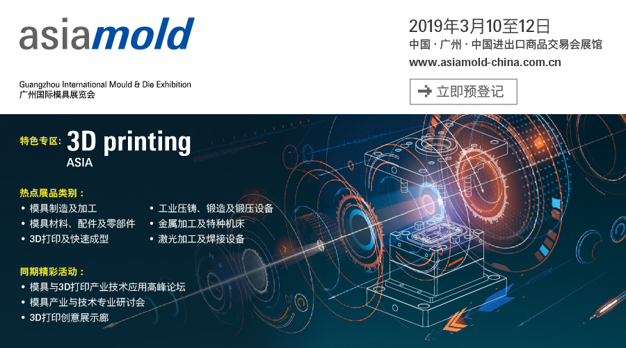 廣州國際模具展覽會將于2019年3月10至12日在廣州中國進出口商品交易會展館行。為期三天的Asiamold將再度與SIAF廣州國際工業自動化技術及裝備展覽會同期舉辦,預計吸引超過850家展商,總展覽面積逾60,000平方米。來自世界各地的專業買家可以在展會上搜羅炙手可熱的模具制造、壓鑄、金屬加工、3D打印、激光及自動化技術。兩展協力同期舉辦,將構建促成更大協同效應的合作平臺,協助業內人士開拓商機。