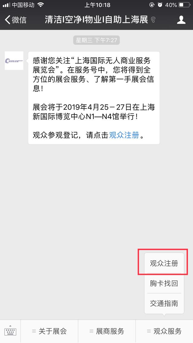 步驟一:點擊公眾號首頁:參觀登記→觀眾注冊