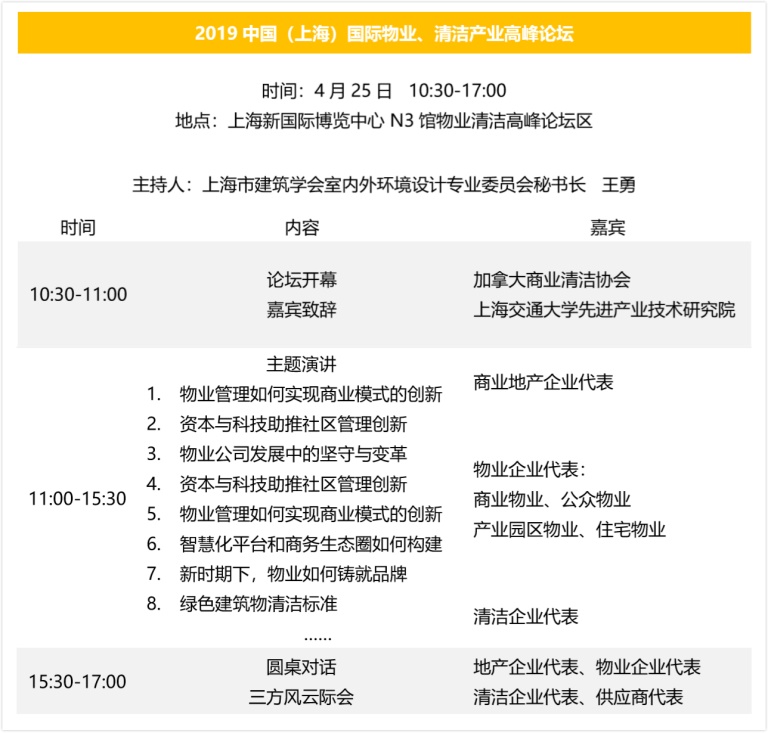 2019中國(上海)國際物業、清潔產業高峰論壇