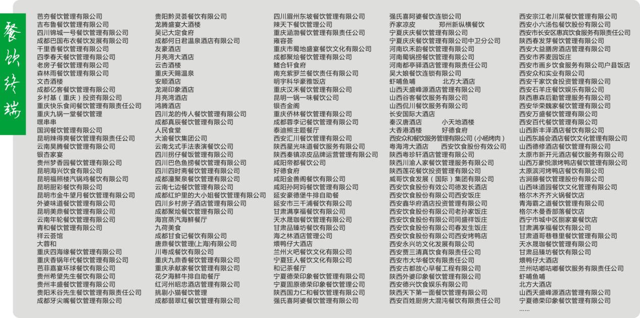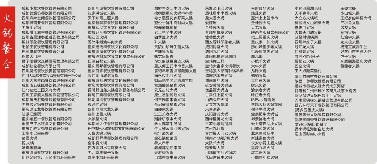 附:海名第八屆成都餐飲火鍋食材用品展4月地推市場(chǎng)名錄: