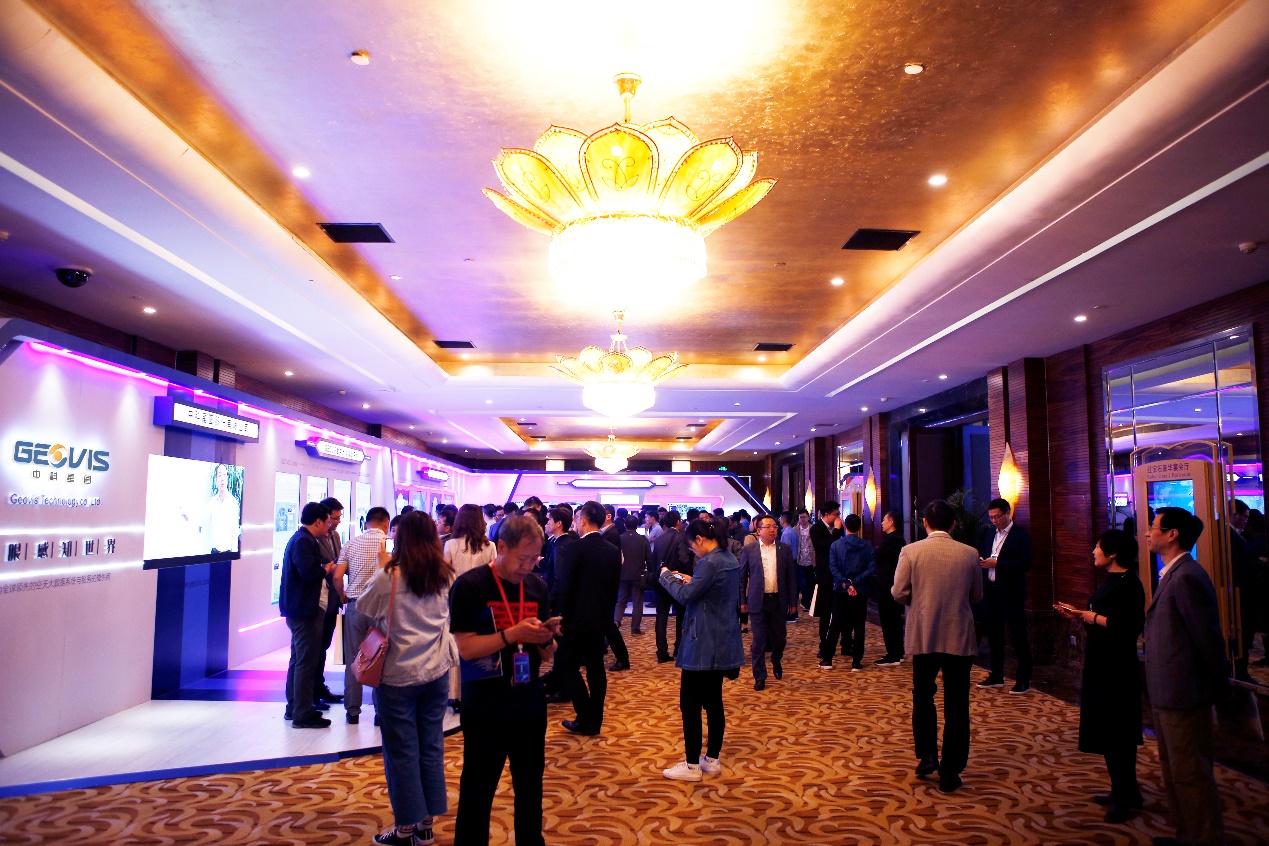 參會院士、專家、領(lǐng)導和嘉賓駐足觀看GEOVIS數(shù)字地球產(chǎn)品相關(guān)介紹