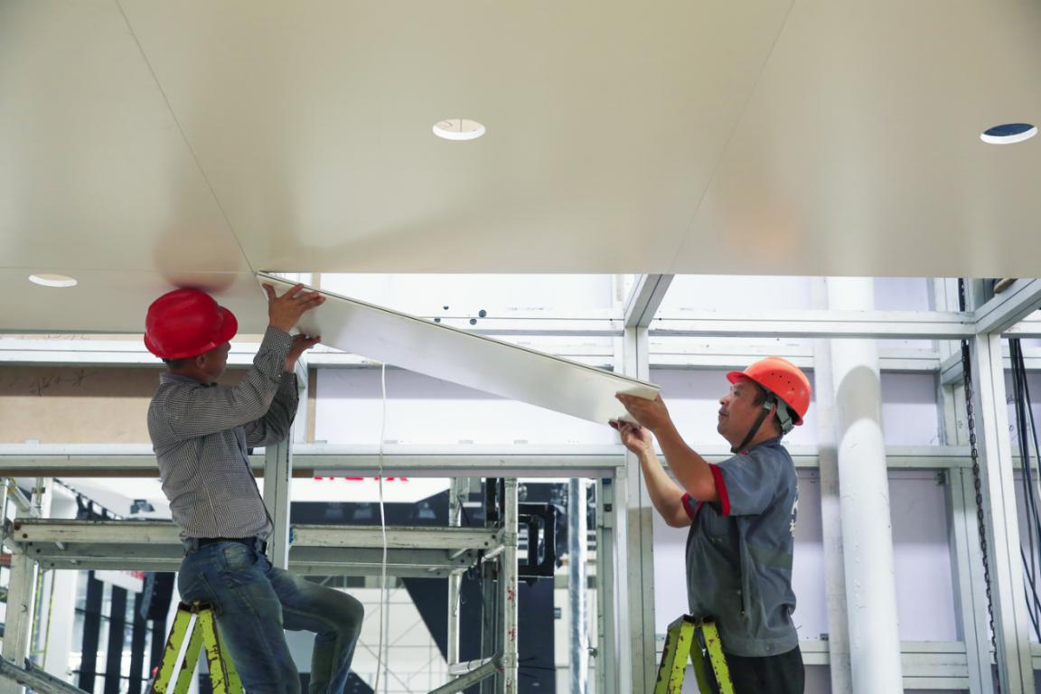 布展期間,展館內會出現一波忙碌的身影,他們頭戴安全帽,或手扛重物,或熟練地爬上爬下,他們正是展臺的搭建工人。嘴角上揚的弧度,是對并肩作戰小伙伴的贊美和鼓勵。一磚一瓦、一絲不茍,只為車展提供更好的參展環境。