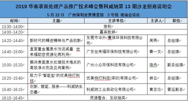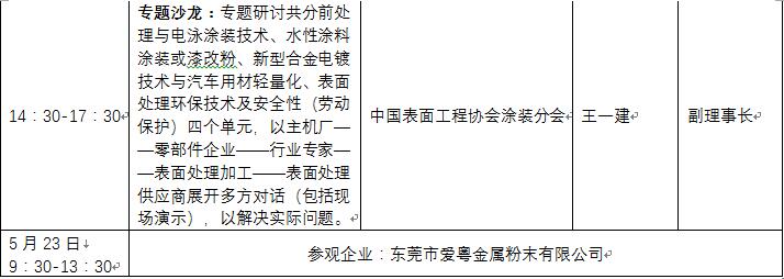 會議與展覽會深度相結合歷來是廣州國際表面處理展覽會的一大特色,本屆展會將有70場次國際性論壇、行業會議、技術研討會在同期舉辦,最新最前沿技術助力用戶企業最大限度地創造產品價值。部分會議及議程如下: