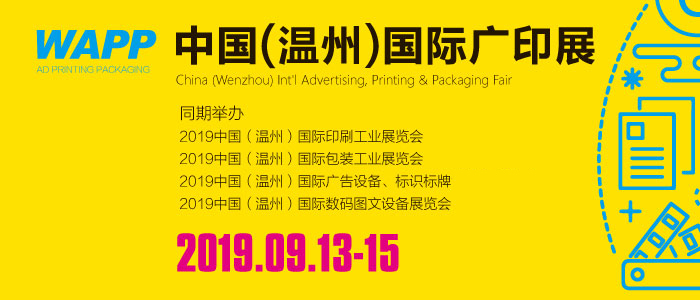 2019中國(溫州)國際廣印展將于9月13-15日在溫州國際會展中心隆重舉行。本屆展會由中國印刷及設備器材工業協會印刷機械分會、溫州市印刷行業協會、溫州市包裝聯合會、浙江省標識行業協會、上海德納會展有限公司主辦,溫州德納展覽有限公司承辦。同期舉辦:2019中國(溫州)印刷工業展覽會、2019中國(溫州)包裝工業展覽會、2019中國(溫州)廣告設備、標識標牌展覽會、2019中國(溫州)數碼圖文設備展覽會等四大主題展會。