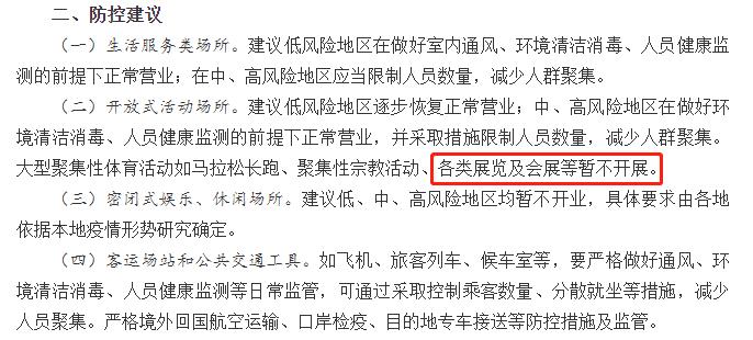 2020年,一場疫情給全球會展行業按下了“暫停鍵”。雖然全國疫情防控形勢持續向好,但國際防控形勢變得尤為嚴峻復雜。根據國務院于2020年4月6日下發的《關于進一步做好重點場所重點單位重點人群新冠肺炎疫情防控相關工作的通知》。《通知》指出大型聚集性體育活動如馬拉松長跑、聚集性宗教活動、各類展覽及會展等暫不開展。