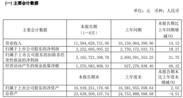 2020上半年,海天味業(yè)多項關(guān)鍵數(shù)據(jù)實現(xiàn)了良好增長。其中,實現(xiàn)營收115.95億元,同比增長14.12%;歸屬于上市公司股東的凈利潤32.53億元,同比增長18.27%;歸屬于上市公司股東的扣除非經(jīng)常性損益的凈利潤31.66億元,同比增長21.75%;經(jīng)營活動產(chǎn)生的現(xiàn)金流量凈額15.70億元,同比增長69.32%。