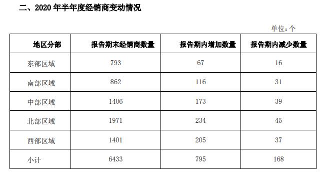 2020上半年,海天味業(yè)繼續(xù)壓實渠道管理的多項舉措,穩(wěn)定經(jīng)銷商的經(jīng)營,完善經(jīng)銷商的產(chǎn)品結(jié)構(gòu),使整個銷售渠道的發(fā)展更加健康,渠道的健康發(fā)展也為未來的市場拓展和品類的發(fā)展奠定了堅實的基礎(chǔ)。截至2020年6月30日,海天味業(yè)經(jīng)銷商數(shù)量達(dá)6433個,新增795個。