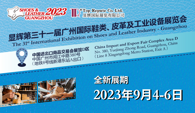 「顯輝第三十一屆廣州國際鞋類、皮革及工業(yè)設備展覽會」煥新啟航,將于2023年9月4-6日在廣交會展館D區(qū)(18.1 -20.1)舉辦,誠邀您在全新的展期再聚全新的展館,共襄顯輝廣州盛會!