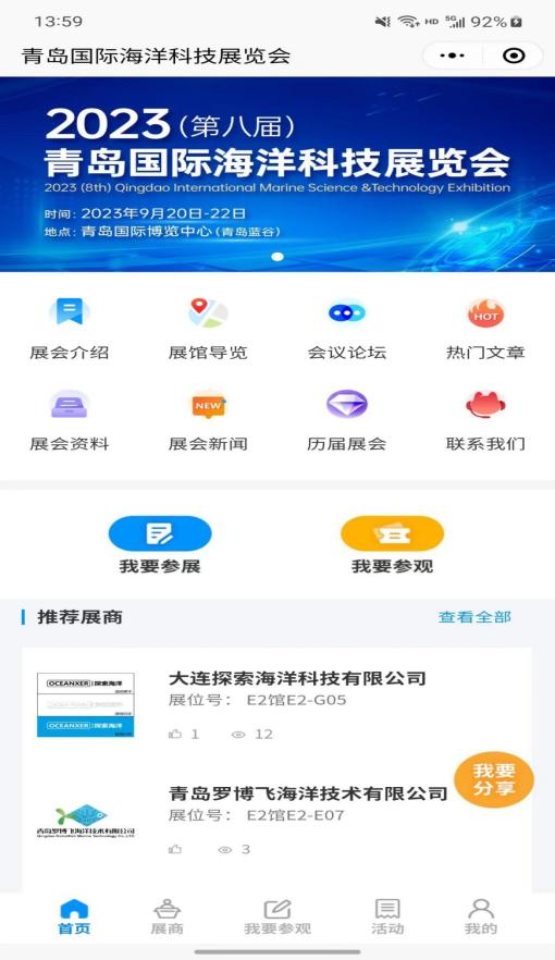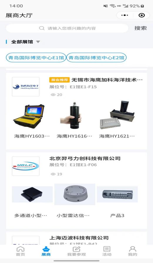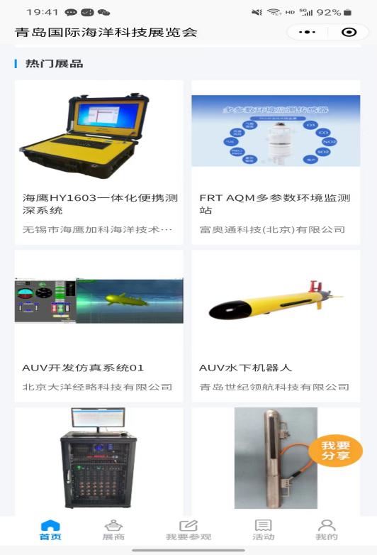 您可以通過展商秀平臺提前預覽2023(第八屆)青島國際海洋科技展覽會參展商、展品、主題論壇、同期活動等展會相關內容,實時掌握青島海科展咨詢、預約洽談,報名參會!