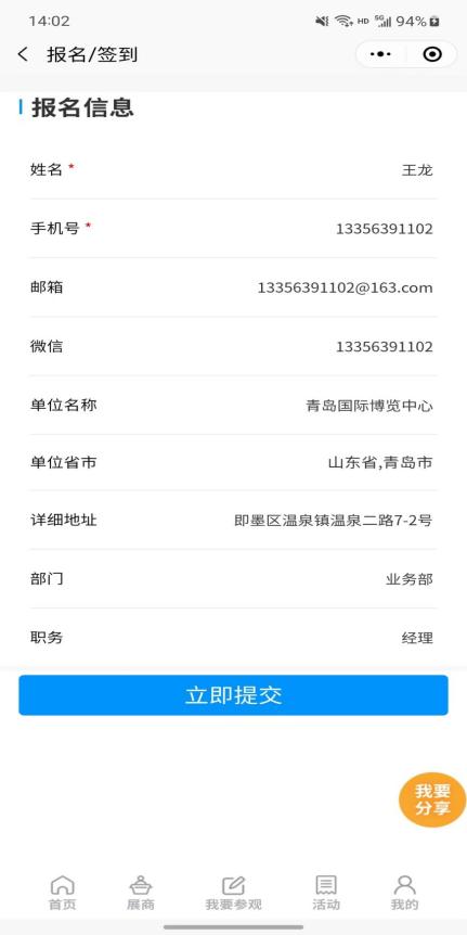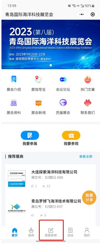 點擊展商秀底邊欄中央的【我要參會】按鈕,直接報名參加青島海科展,避免現場登記注冊麻煩。提前預登記的觀眾還可以享有免費午餐等展會特權!