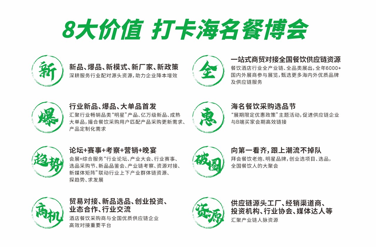 提利潤、選新品、找廠家!在此我們衷心地希望您可以通過海名成都餐博會建立更多商務關系,達成更多實效合作,啟發適合自己的發展思路,海名·2024第12屆成都餐飲供應鏈博覽會誠邀您的蒞臨!