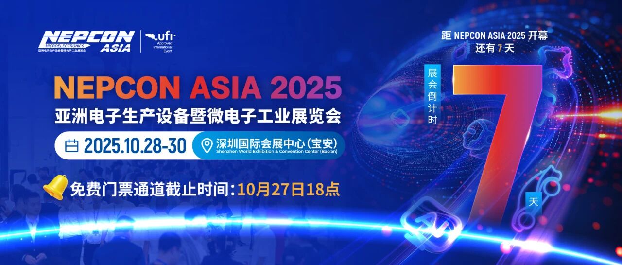 電子展:倒計時7天!NEPCON ASIA 2025重磅發布眾多亮點展區、40場高端論壇、新品首發及前沿方案,搶先登記免費領100元門票