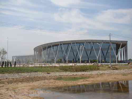 東營黃河國際會展中心工程位于黃河路以南、廣利河以北、廬山路以東、香山路以西,與東營文化藝術(shù)中心、博物館、圖書館和科技館工程整體規(guī)劃建設(shè),總建筑面積3.7萬平方米。其中,展廳面積23679平方米,設(shè)國際標(biāo)準(zhǔn)展位836個,主要用作商品展示和貿(mào)易,同時可作為政治、經(jīng)濟(jì)、文化集會的場所。會議中心面積5153平方米,多功能廳900平方米,結(jié)合觀光塔和餐飲中心,可為公眾提供一個集旅游、休閑、健身、娛樂和餐飲于一體的休閑娛樂場所。